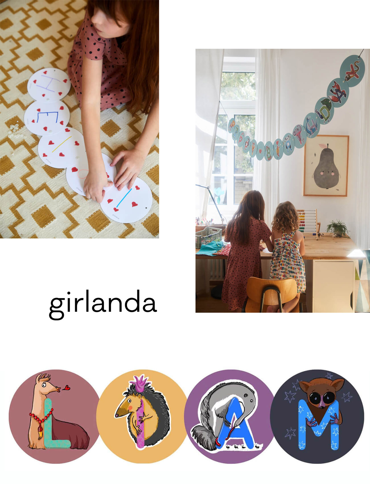 Alle Buchstaben gibt es von A wie Ameisenbär bis Z wie Ziege. So können die meisten Namen mit dem praktischen Click-System, das so girlanda-typisch ist, selbst zusammengesteckt werden.