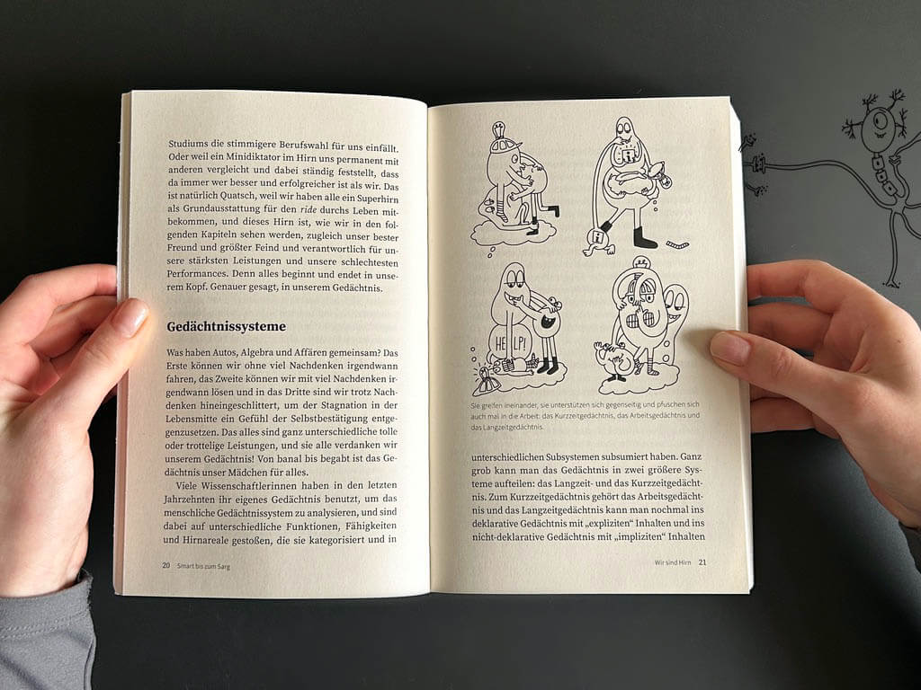 Barbara Plagg hat ein wunderbares Buch über unser hübschestes Organ geschrieben und ich habe es illustriert! O-Ton Barbara: "Also massiert euren Temporallappen, streichelt euer Stirnhirn und ölt euren Hippocampus mit Witz und Wissenschaft! Ab jetzt überall erhältlich und nützlich für alle, die ein Hirn haben! (Auch für jene, die damals im Biounterricht wenig verstanden und viel geschlafen haben, heute aber trotzdem ganz gern wissen würden, warum sie schon wieder den Namen der neuen Arbeitskollegin aus der Verwaltung vergessen haben - und was man dagegen tun kann.)"