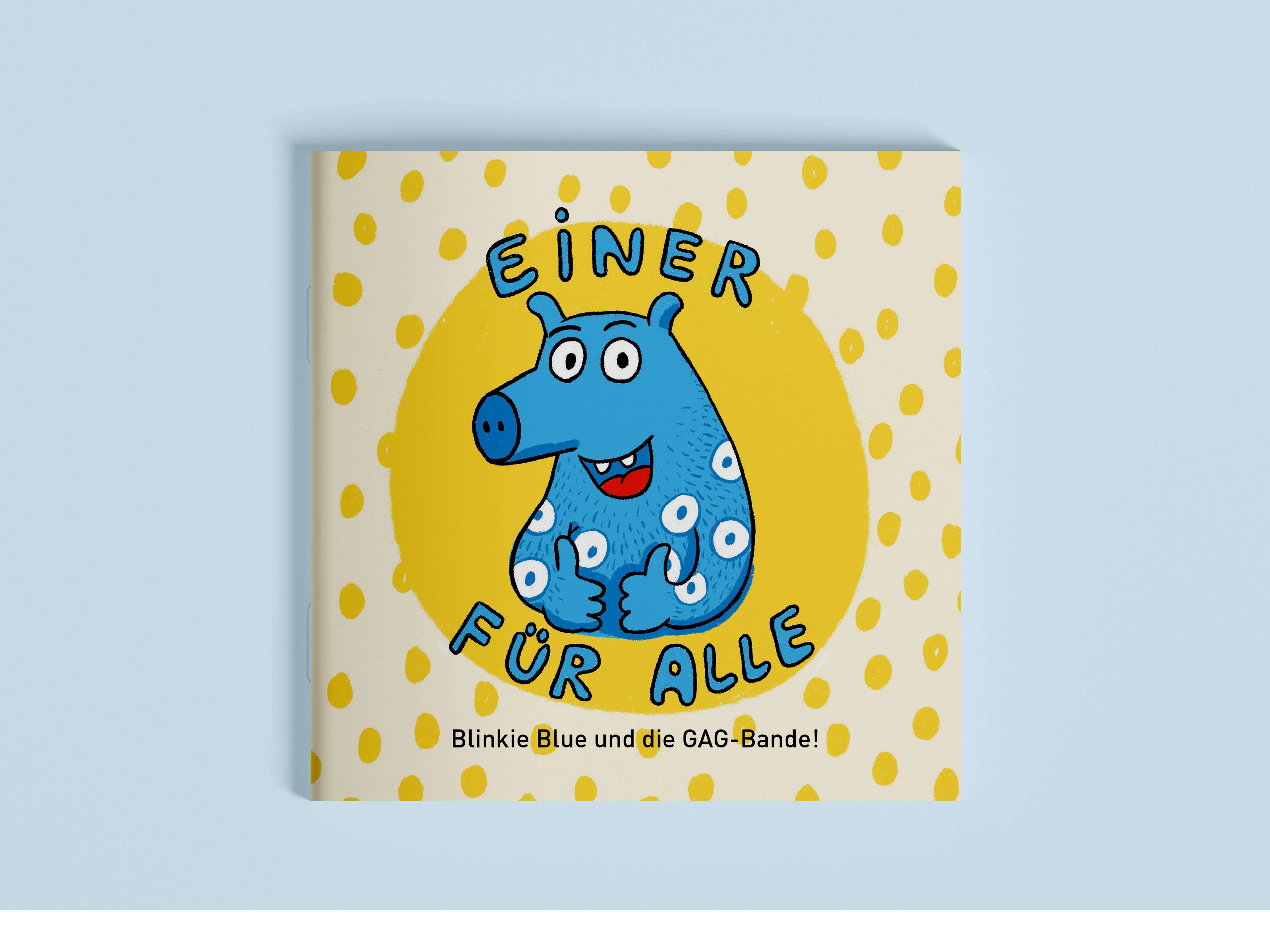 Die GAG verteilt die Büchlein gratis bei Sommerfesten und sonstigen Feiern direkt aus der Umhängetasche des Blinkie-Blue-WalkingActs, den ich auch entworfen habe, und den ihr bald hier (Link kommt) sehen könnt.