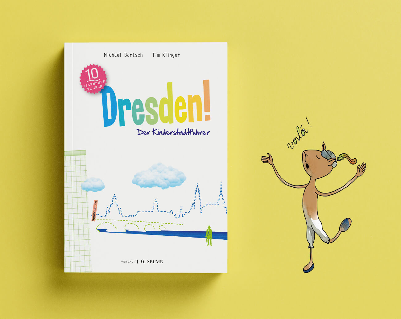 Für den Seume Verlag habe ich jeweils eine Figur entwickelt, die durch Dresden und durch Kiel führen. Der Kinderstadtführer schlägt verschiedene Spaziergänge vor, um durch Fragespiele und interessante Fakten die Kinder bei einem Städteurlaub bei Laune zu halten. Die Sympathiefigur im Dresden-Stadtführer ist angelehnt an das Dresdner Brückenmännchen, erkennbar am charakteristischen Hut.